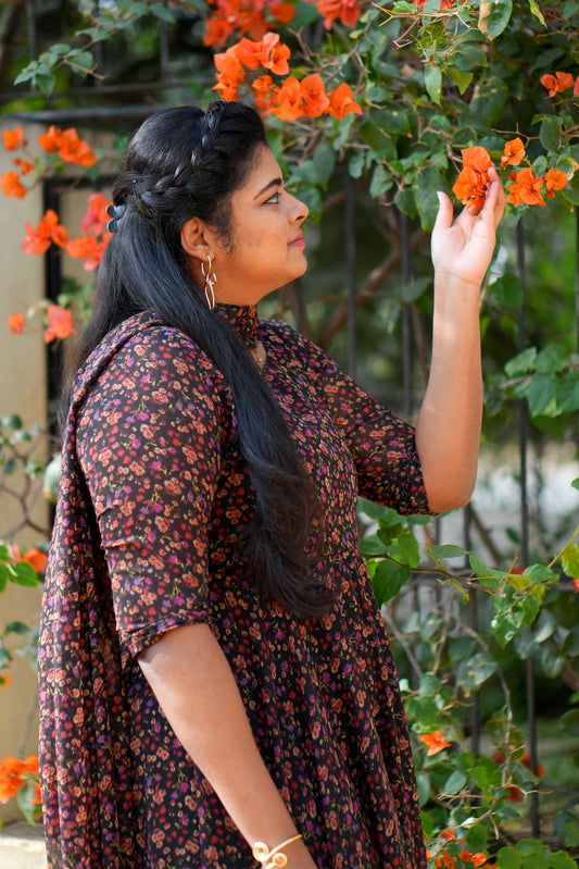 Harshini Blue Floral 3 Tier Cotton Maxi Dress