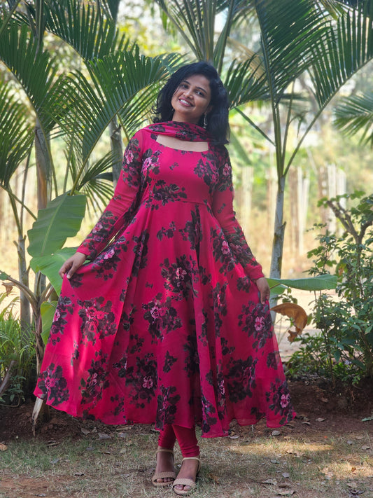 Berry Pink Floral Print Anarkali
