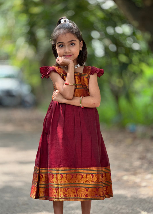 Sold outShanvi Marron Ethnic Baby Frock
