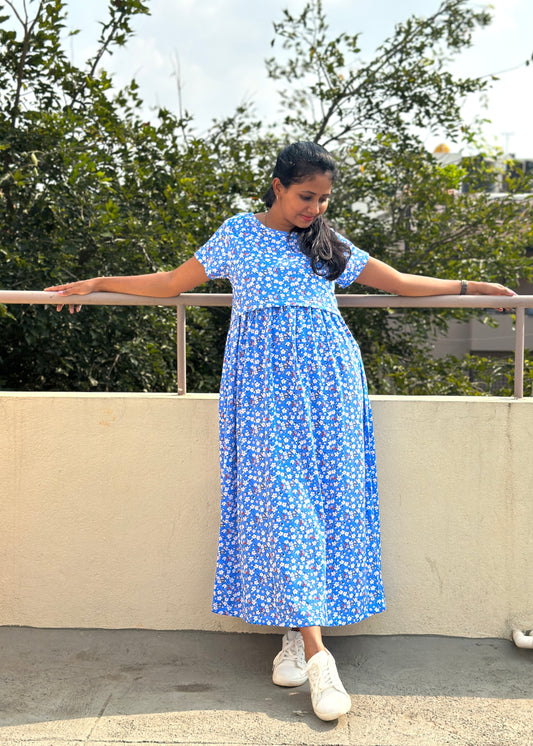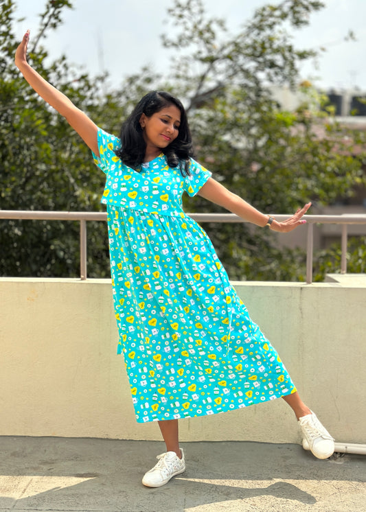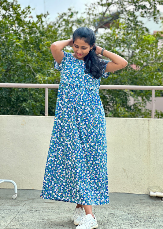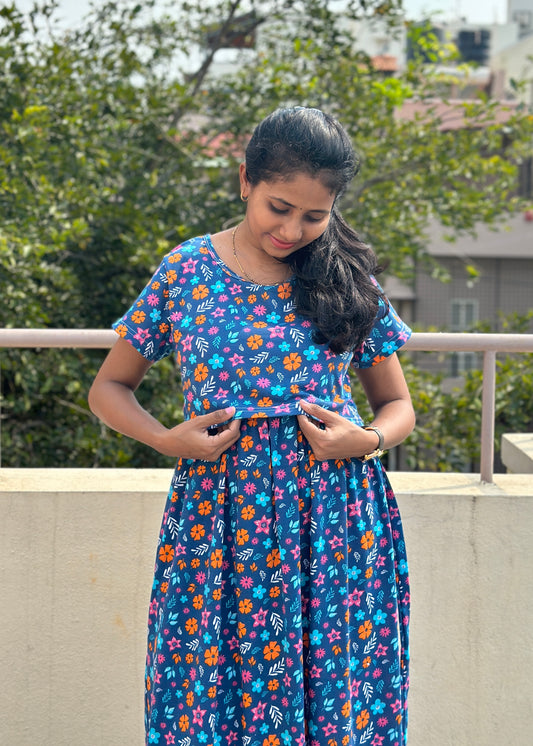 Teal Floral Printed Maternity & Feeding Loungewear- M & L Available