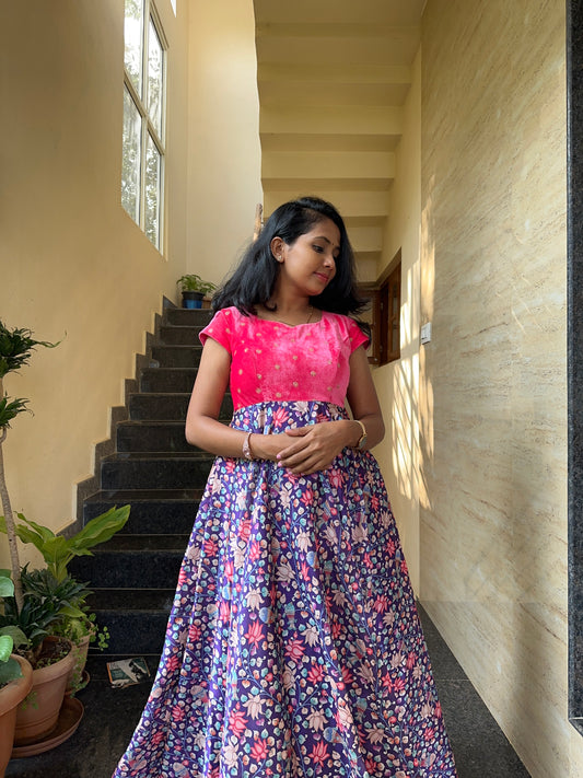 Sahasra Velvet & Kalamkari Full Flare Long gown