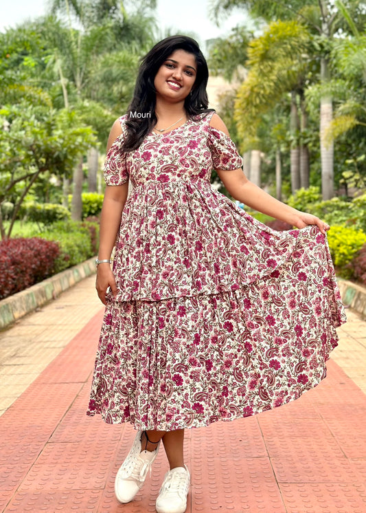 Diya Cream and Wine Floral Rayon Midi Dress