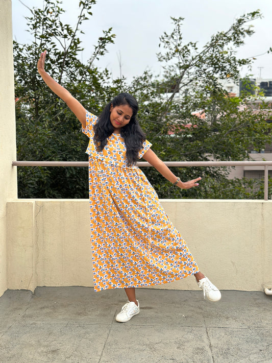 Mustard Printed Full length Maternity & Feeding Loungewear 3XL Available I