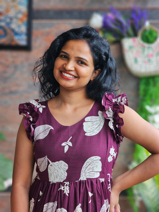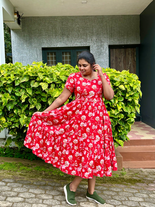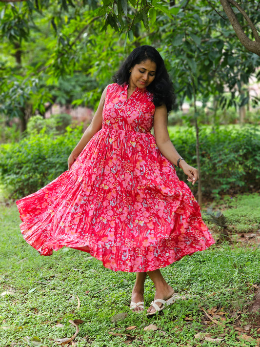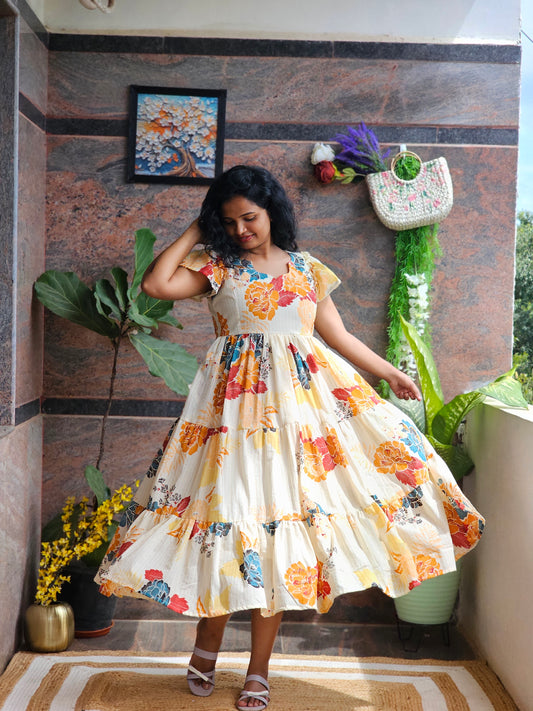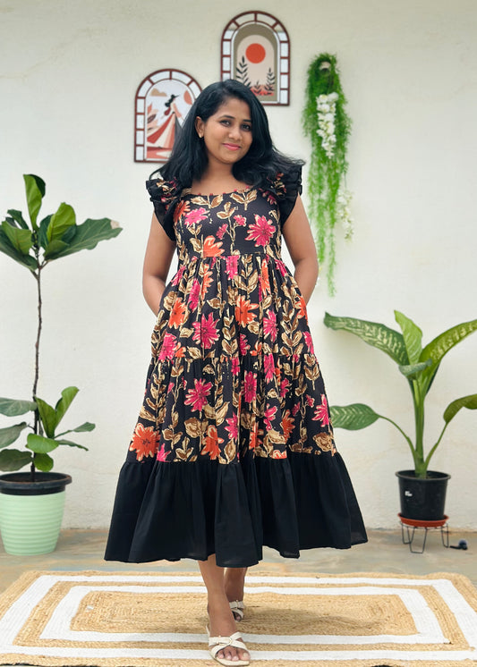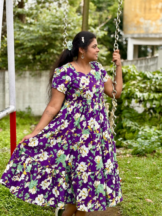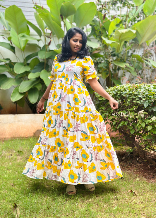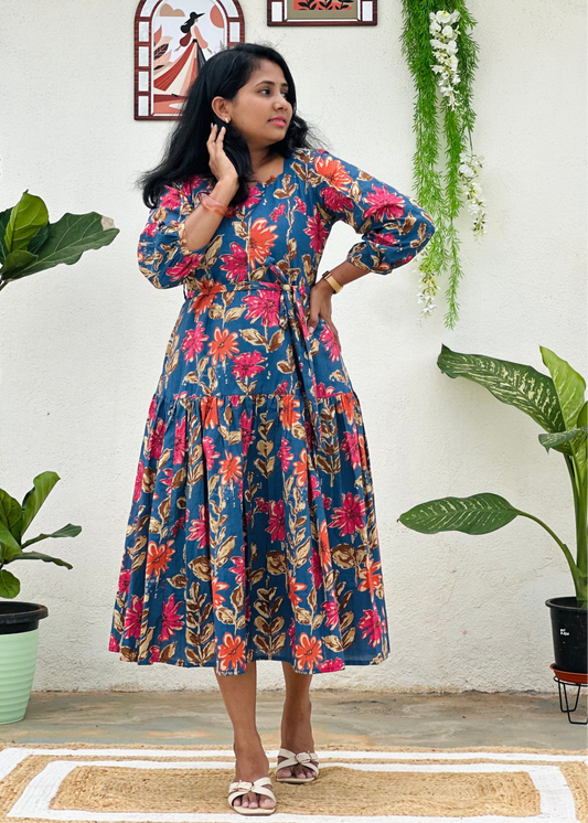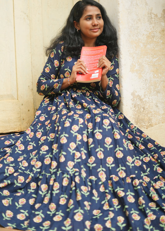 Harshini Blue Floral 3 Tier Cotton Maxi Dress