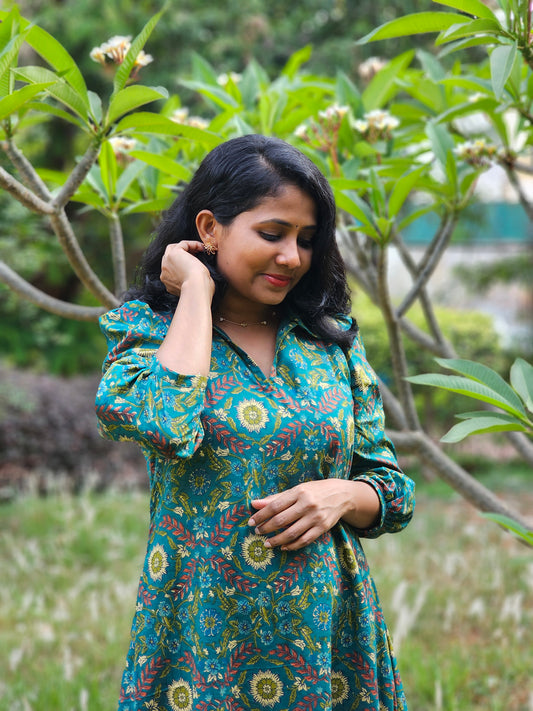 Forest Muse A line Cotton Midi Dress