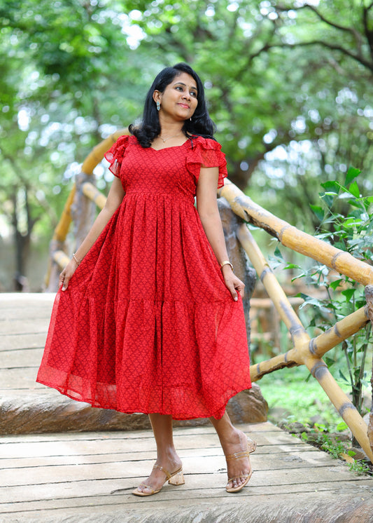Jinisha Patola Print Cotton 3 Tier Midi Dress