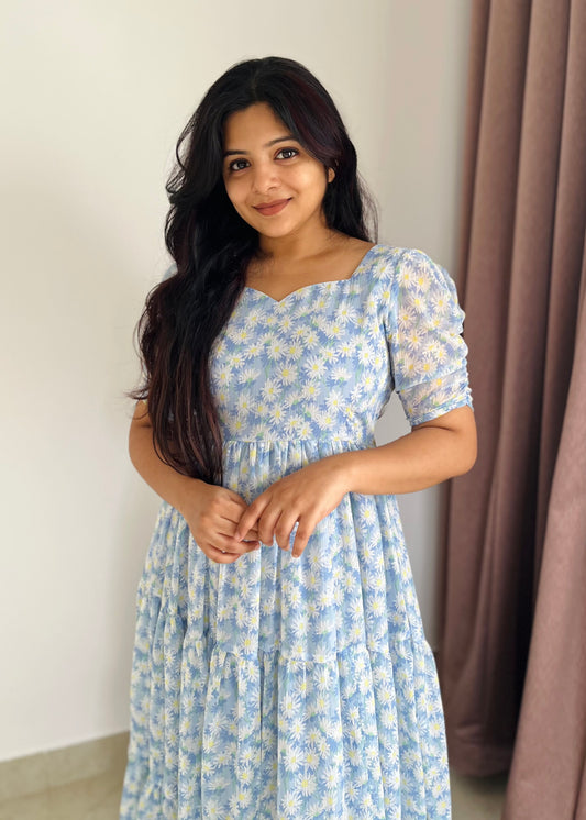 Blue Daisy 3 Tiered Midi Dress