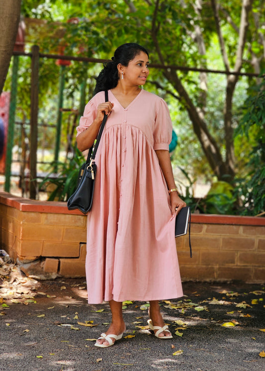 Dusty Pink Solid Midi Dress - Ready to Ship