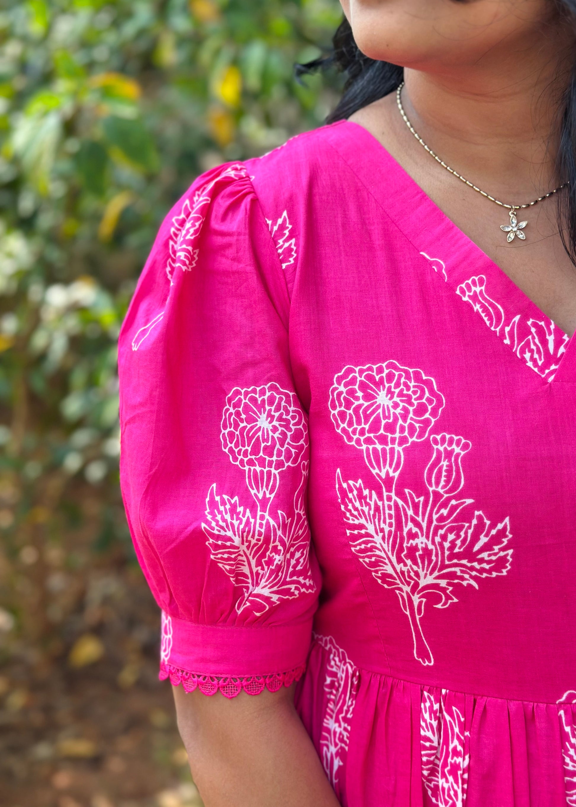 Sleeves: Elbow length puff sleeves 1" band with lace