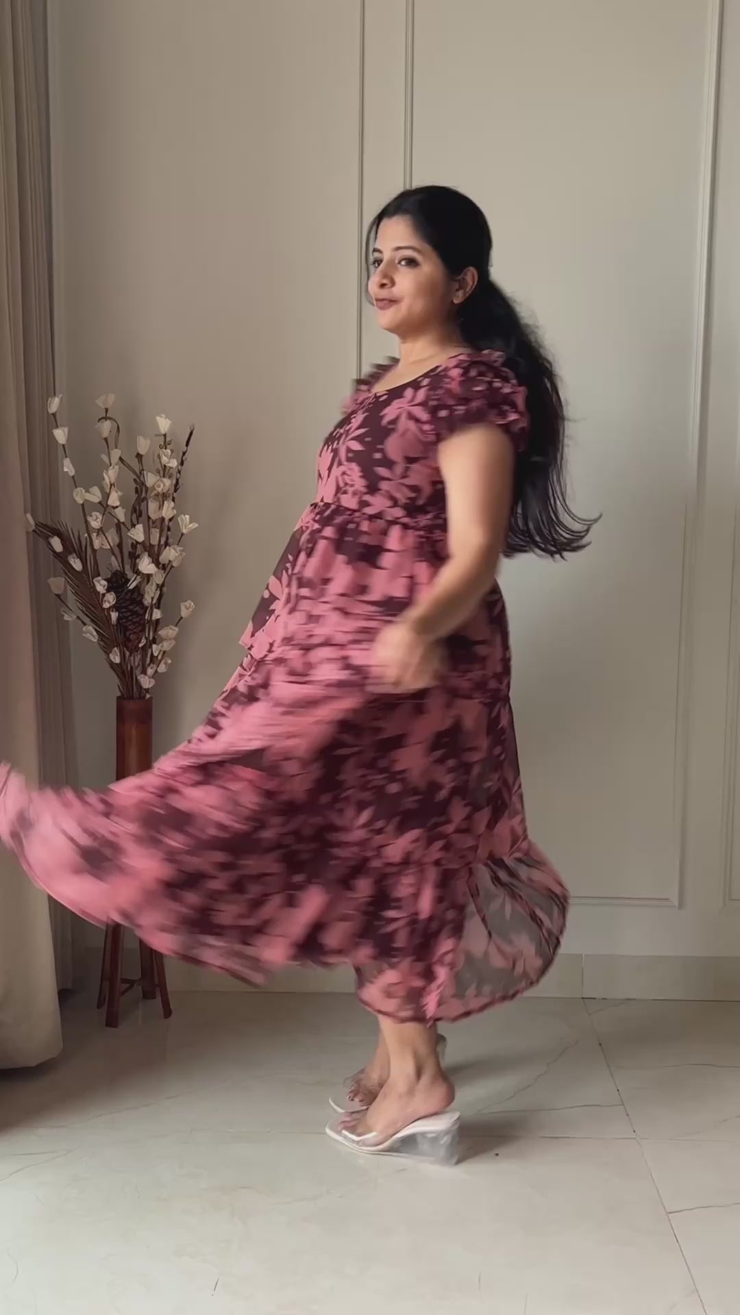 - Model is wearing size M, dress length 44” (Height: 5’1”)
