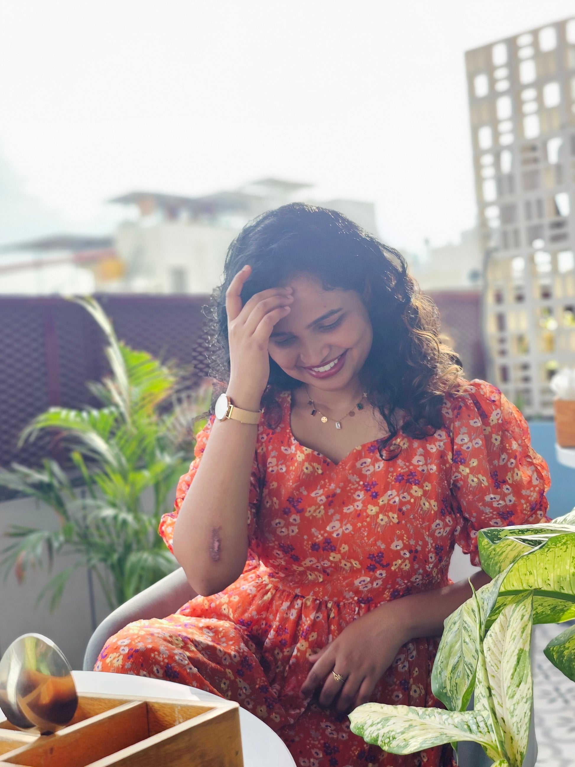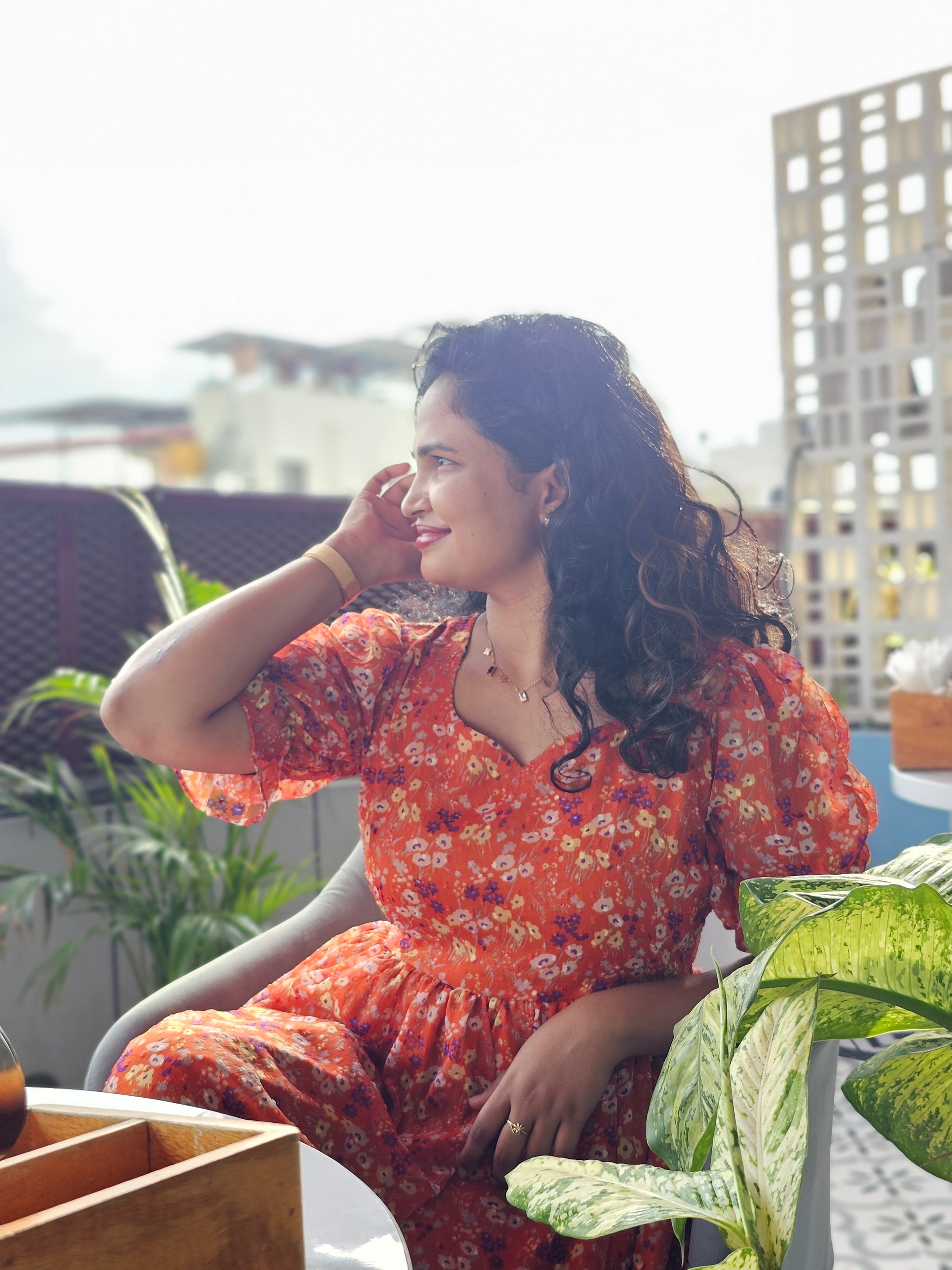 🌸Bright orange base with delicate floral print – for a lively, feminine touch