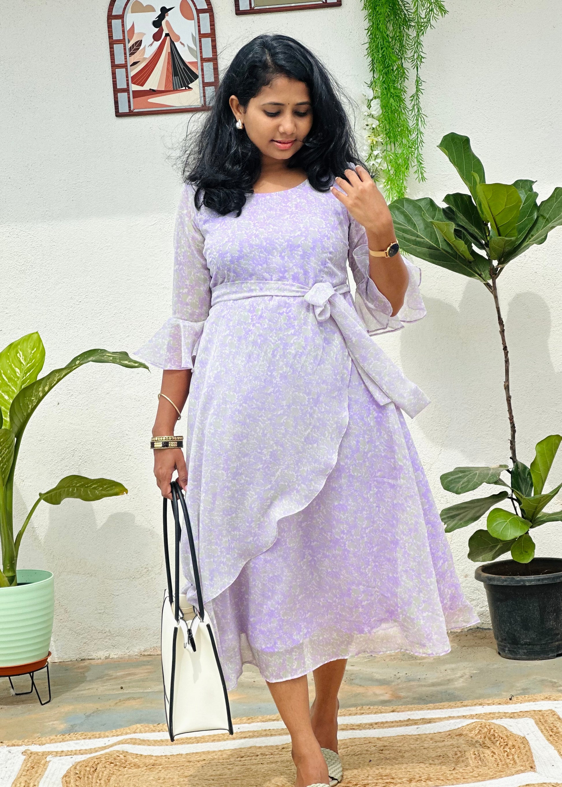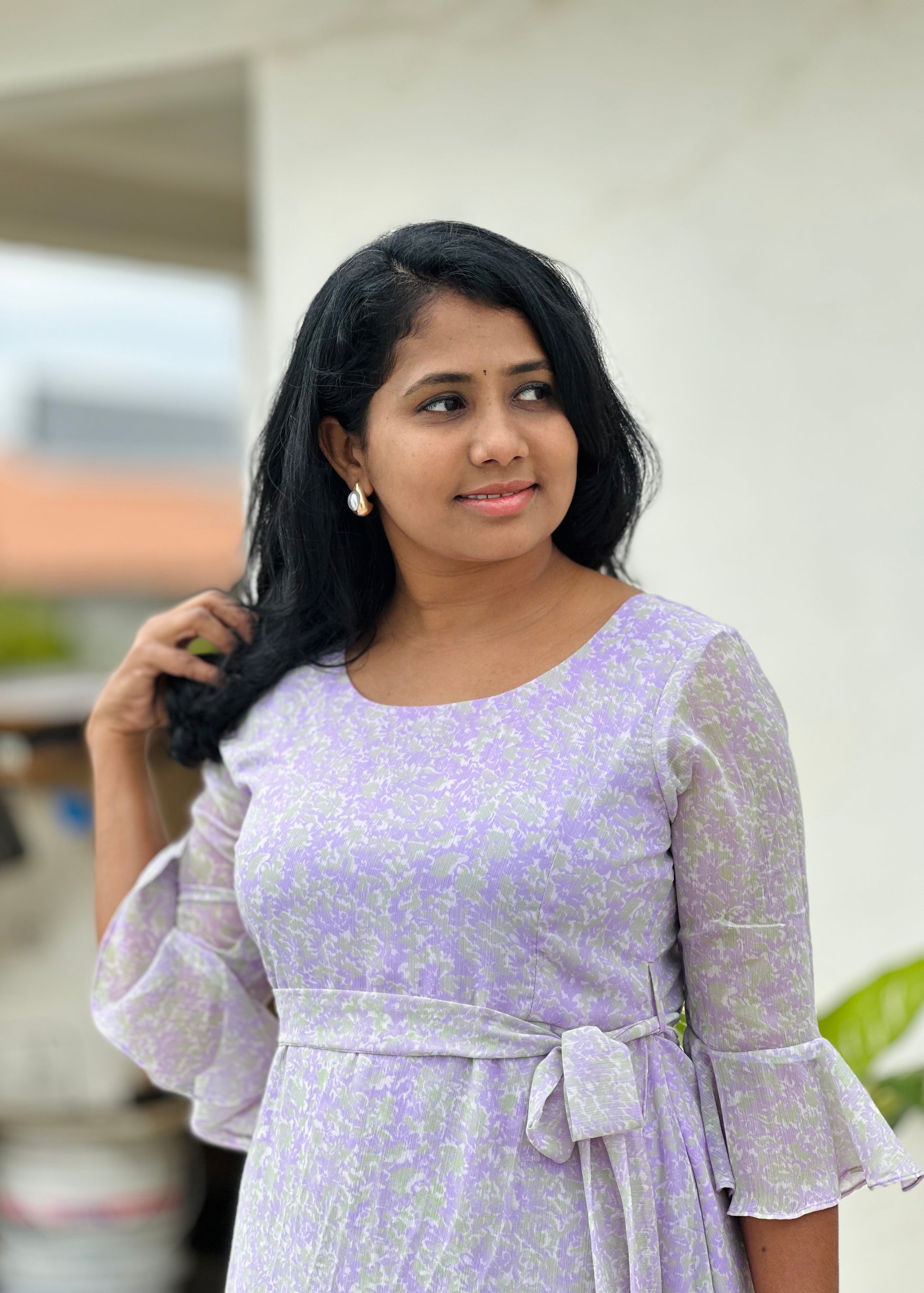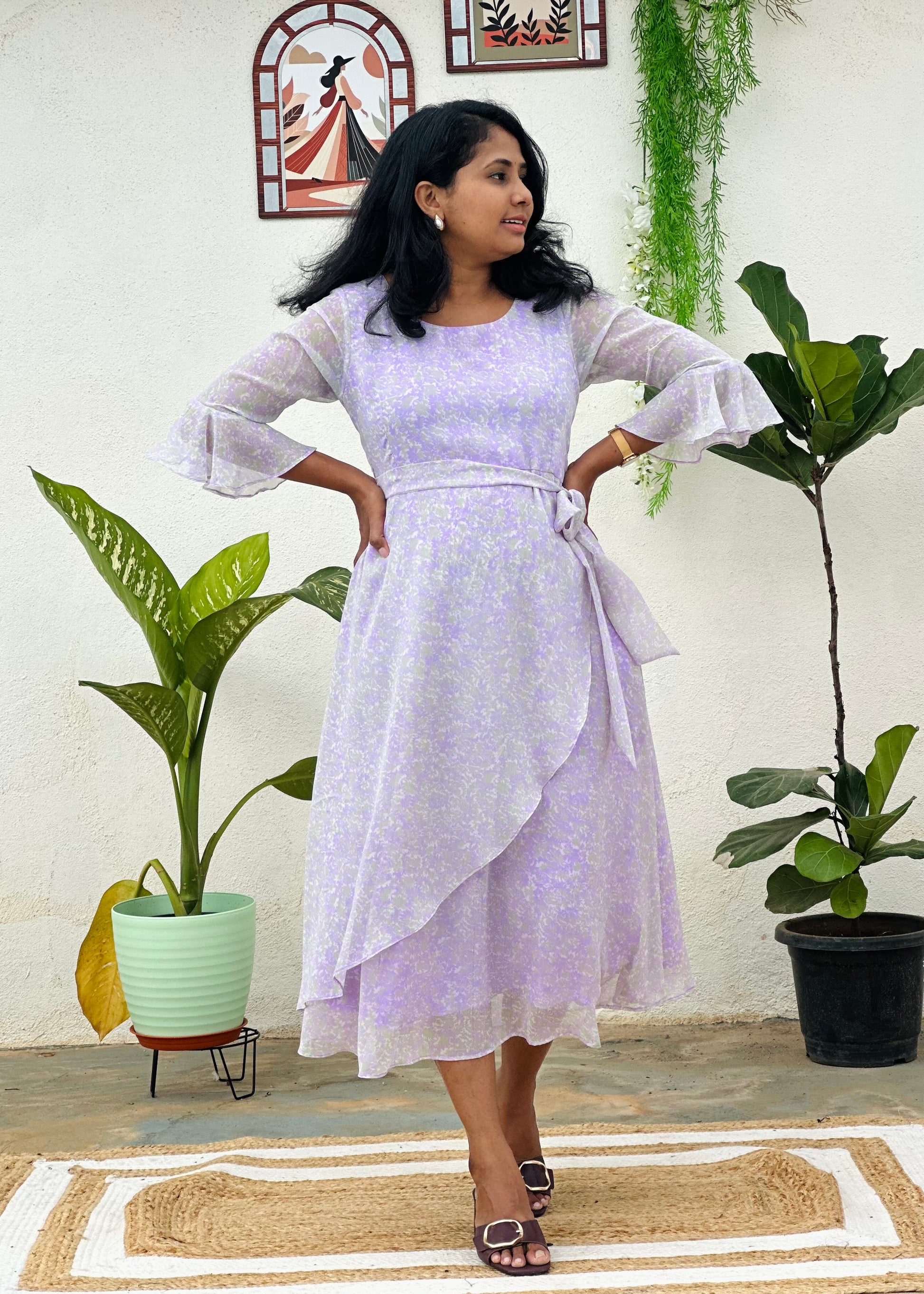 - Model is wearing size M, dress length 46” (Height: 5’1”)