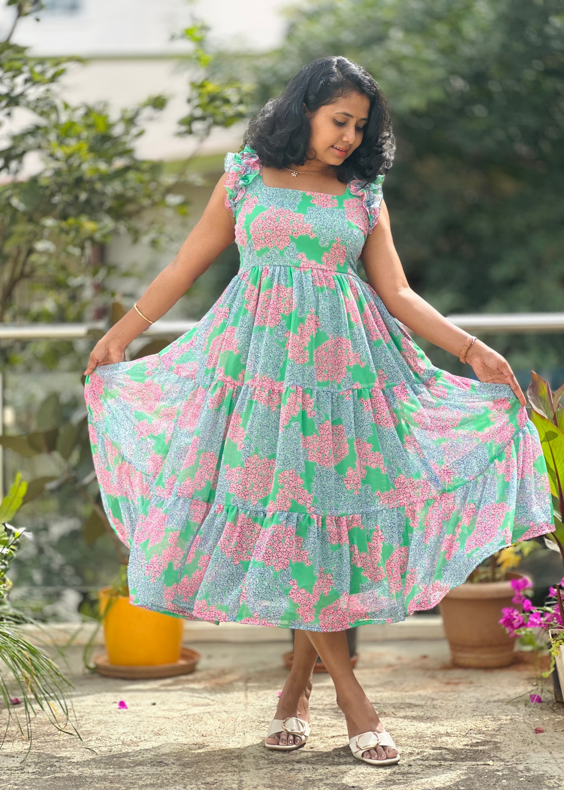 Spring garden midi dress