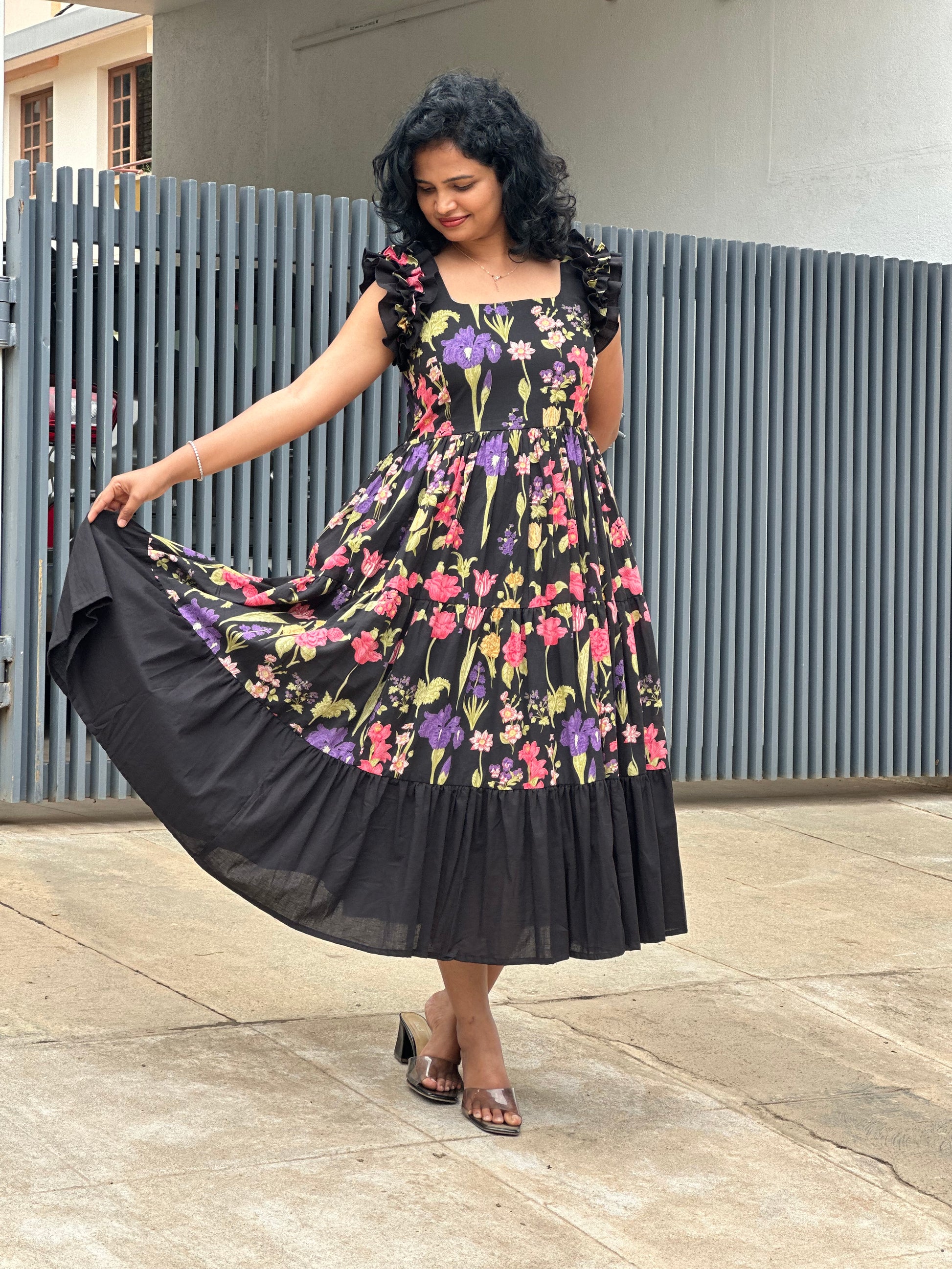 Zeya Black 3 tiered midi Dress